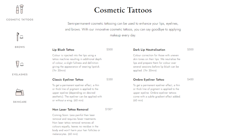 A Melbourne cosmetic tattooing studio, presented with the polish their brand deserves.