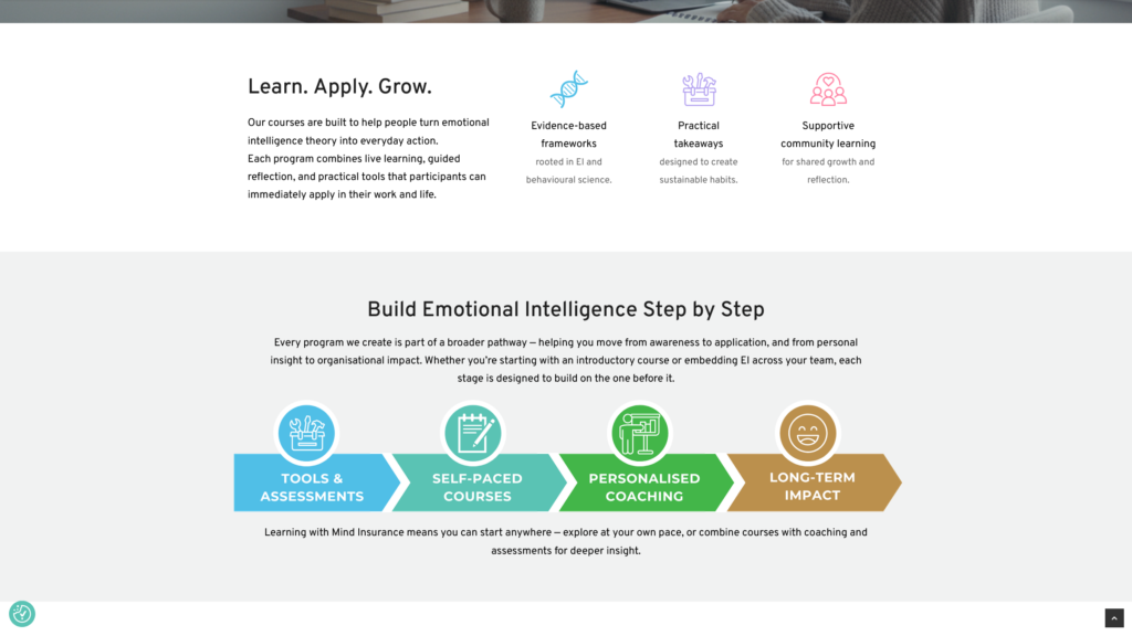 Mind Insurance is an Australian consultancy dedicated to helping individuals and organisations strengthen emotional intelligence. Their work spans coaching, workshops, and online tools — practical, evidence-based resources designed to make EI accessible in everyday life.
