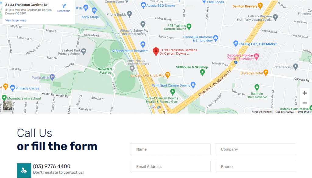 Contact Page— google maps live API integration and contact form