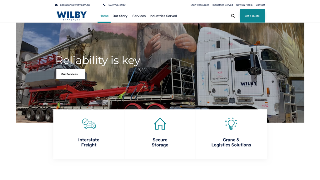Wilby Transport is a freight and logistics company providing reliable transport solutions across Australia. Their business needed an online presence that matched the scale and dependability of their operation — something that spoke directly to corporate clients without unnecessary complexity.